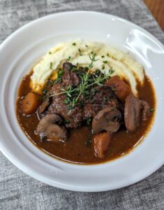 Beef cheeks and pie is a match made in heaven! But, you will want to thicken the red wine sauce so it doesn’t run straight out of your pie after you take a bite!