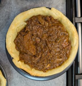 If you like your stroganoff topped with a dollop of sour cream, smear a teaspoon or two on top of the filling before you add the puff pastry top. It’ll give the whole pie an extra hint of creaminess.