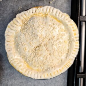5. Brush the egg over the top of the pastry, then sprinkle with sesame seeds.
